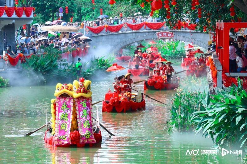 以“水”文化为主题的民俗活动则是南沙节日期间的又一重头戏。国庆节一早,大岗镇和横沥镇齐齐上演水上的“速度与激情”。