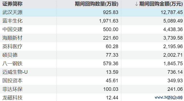 11家上市公司股票获回购怀远股票,武汉天源回购金额最高11家上市公司股票获回购,武汉天源回购金额最高