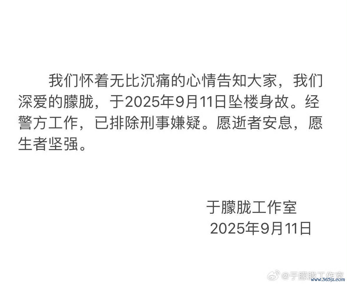 演员于朦胧工作室发文:于朦胧坠楼身故,已排除刑事嫌疑演员于朦胧工作室发文:于朦胧坠楼身故,已排除刑事嫌疑